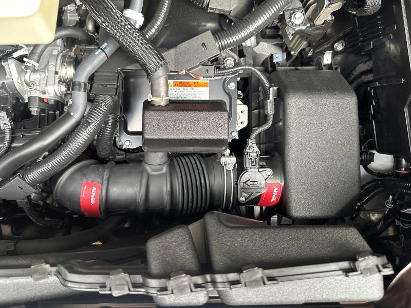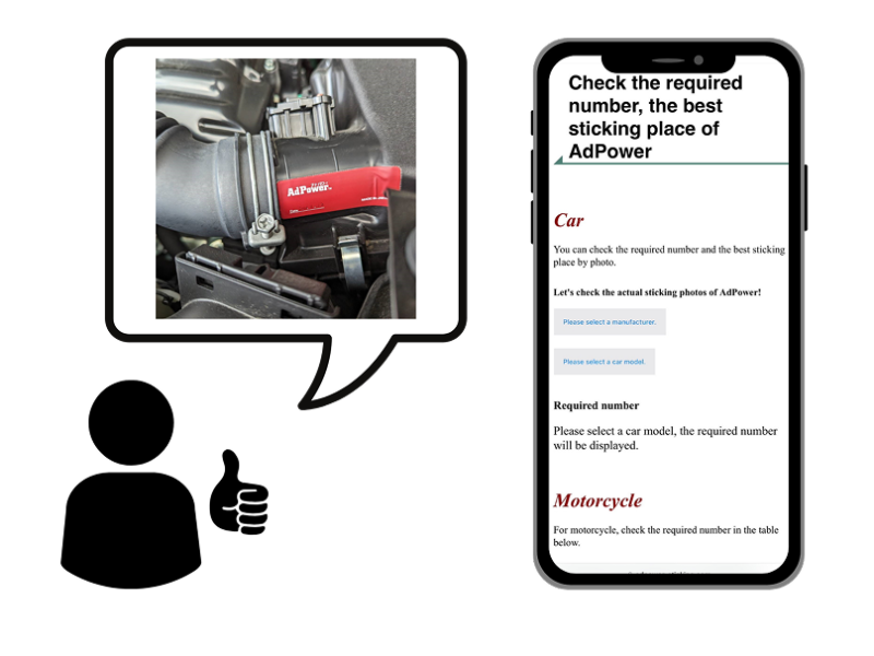 Remove the double-sided tape on the back of AdPower and attach it over the air cleaner box. Wipe the surface with a dry cloth before applying for better adhesion.